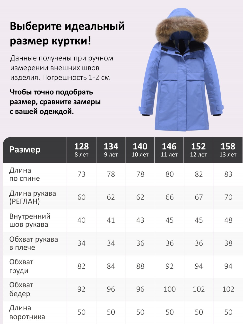 Размер Длина изделия по спине Длина рукава от плеча (РЕГЛАН) Внутренний шов рукава Обхват рукава в плече Обхват груди Обхват бедер Длина воротника